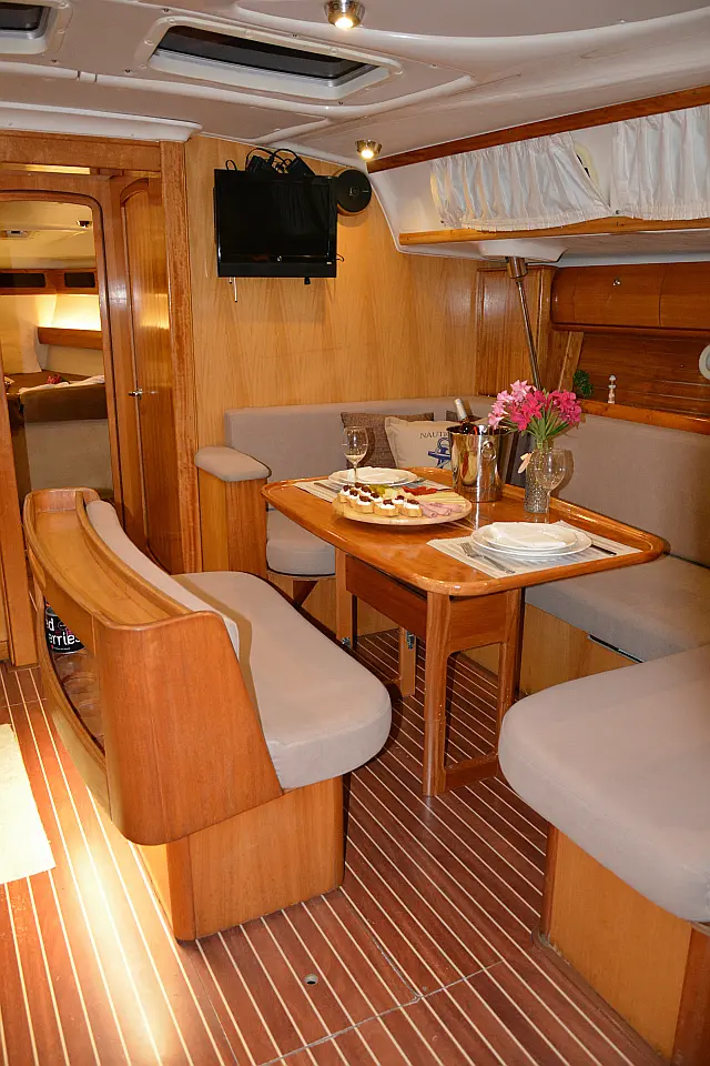 Klasyczny jacht odnowiony. Świetnie żeglujący i tylko dla 8 osób przy 4 kabinach- nikt nie sypia w mesie!