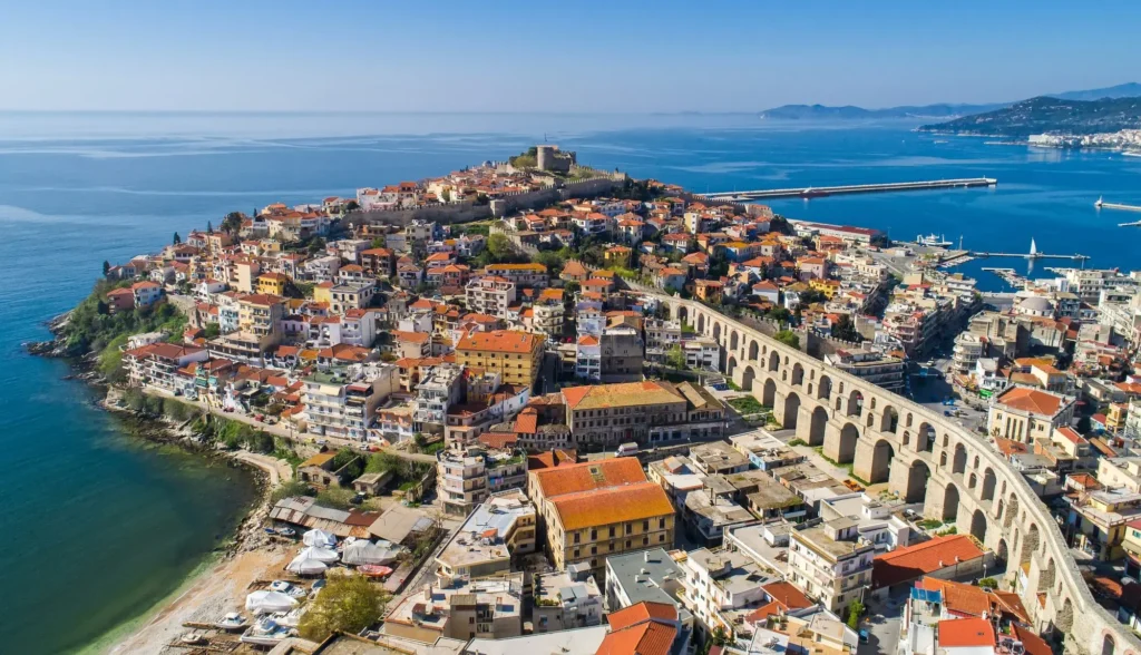 Przylot do Salonik. Bus do Kavali- zwiedzanie przepięknego miastecza z majestatycznym akweduktem. Zaokrętowanie w Kavala/ Avdira. Zakupy i przygotowanie do drogi!