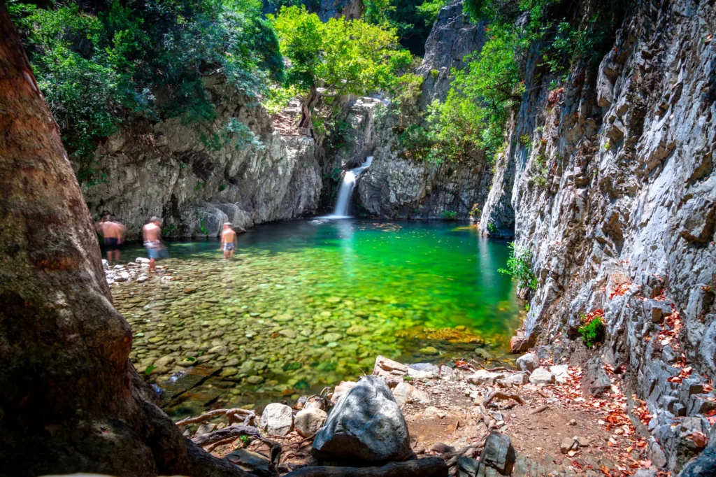 W porcie chcemy być przed 10 rano! Wynajmujemy skutery. Przepiękną plażę ze zdjęcia powyżej zostawiamy sobie na sam koniec! Jedziemy w góry- zaliczamy wodospady Maries!