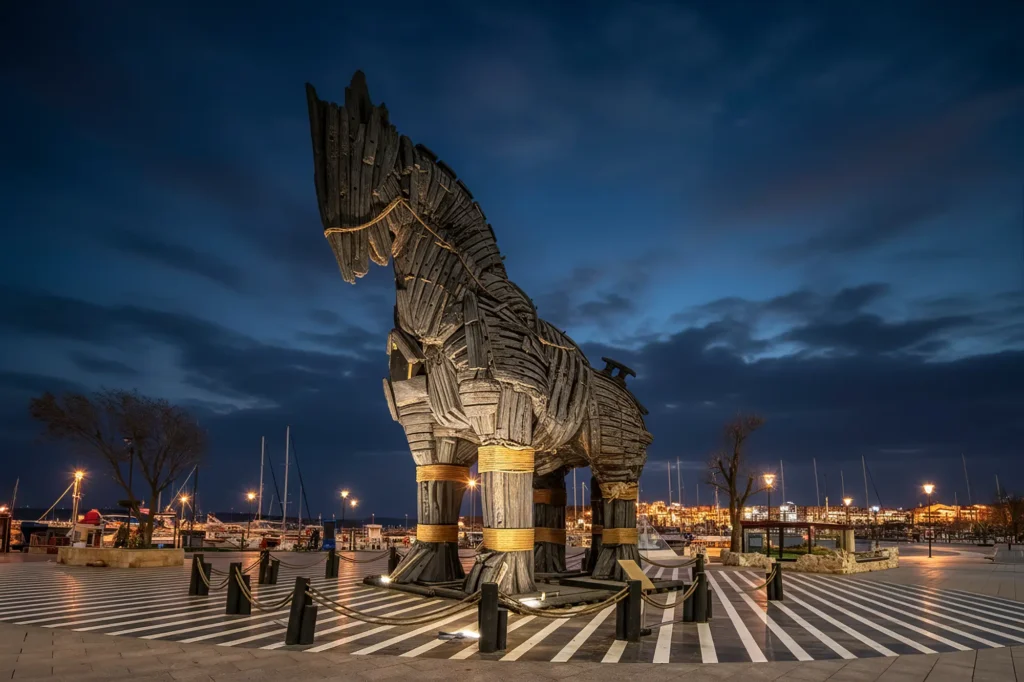 Kolejna nocna żegluga i docieramy do Turcji. Odprawa paszportowa zajmie nam ze 3 godziny! To piękne miasteczko zaprasza na kulinarną turecką ucztę oraz do pierwszej na trasie rejsu knajpki oferującej tylko "czaj". Tych z ADHD możemy wypchnąć na szybkie zwiedzanie Troi. Tych chcących odpocząć zachęcamy do spaceru po urokliwych uliczkach i obejrzenia portowego konia trojańskiego!